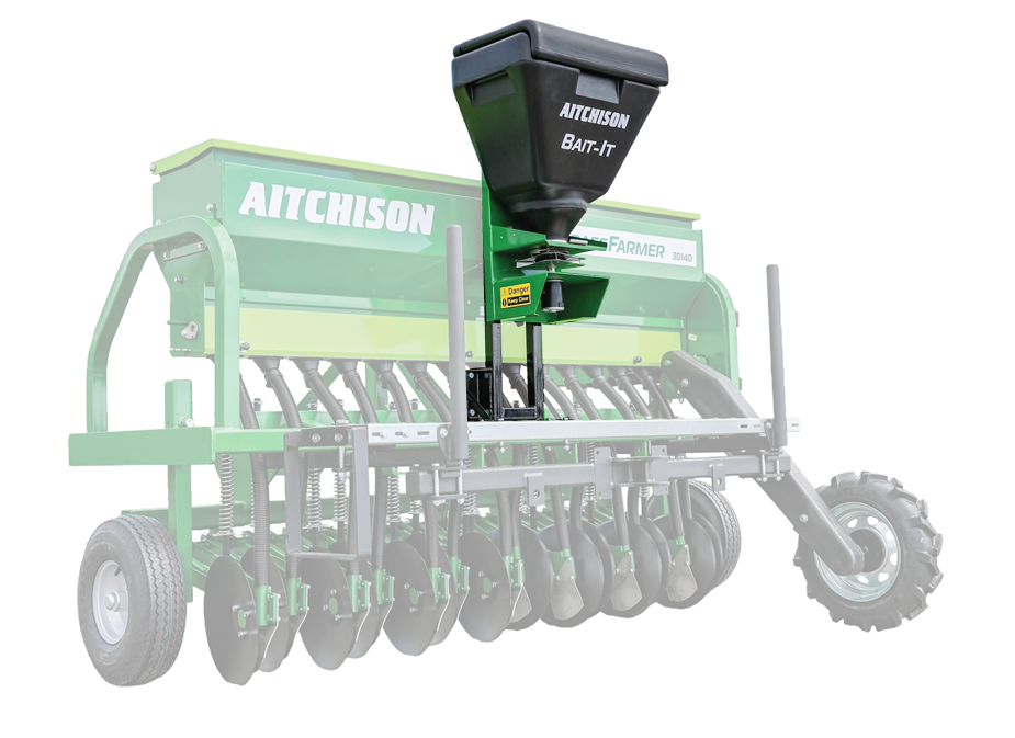 The Aitchison® BAIT-IT is a rugged 12-volt broadcast spreader, built to apply slug and rodent bait in the same pass as you sow. With a spread pattern of up to 24 metres and a 75-litre hopper, it delivers wide, efficient coverage without adding time or trips to your day.