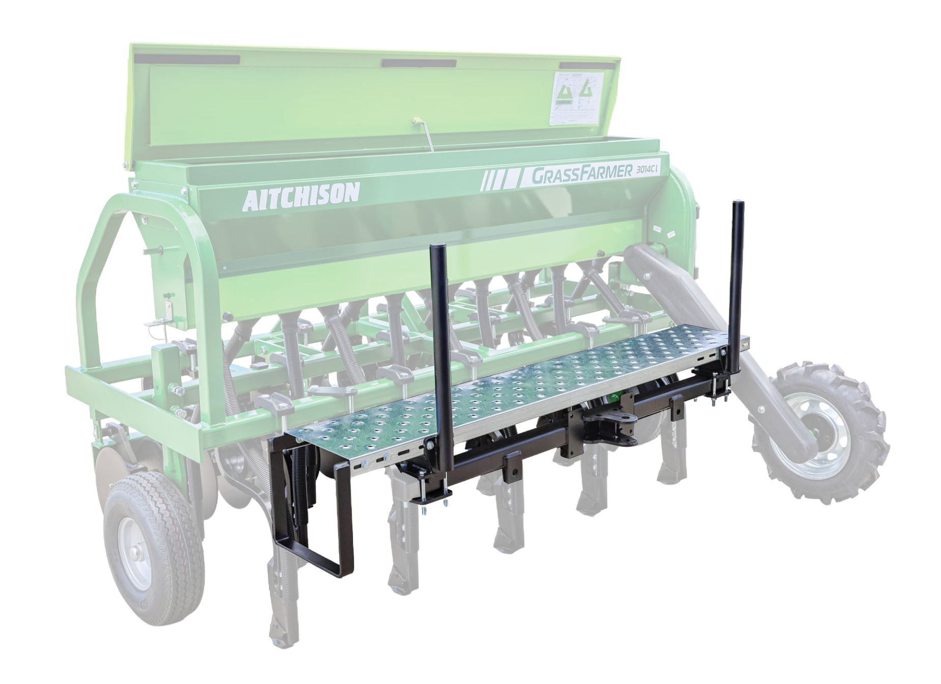 This is a great upgrade to your GrassFarmer® seed drill making it easier to use and more versatile. It gives you safe and simple access for loading and space to carry extra bags of seed. With a rear drawbar, you can tow a compaction roller at the same time, while the integrated mounts enable you to tow cover harrows and mount a slug and rodent bait applicator (Bait-It) when needed. This upgrade is available for all GrassFarmer® 3008, 3014 and 3018 Disc and Tine models, and can also be retrofitted to existing machines. Why this is a great upgrade option :