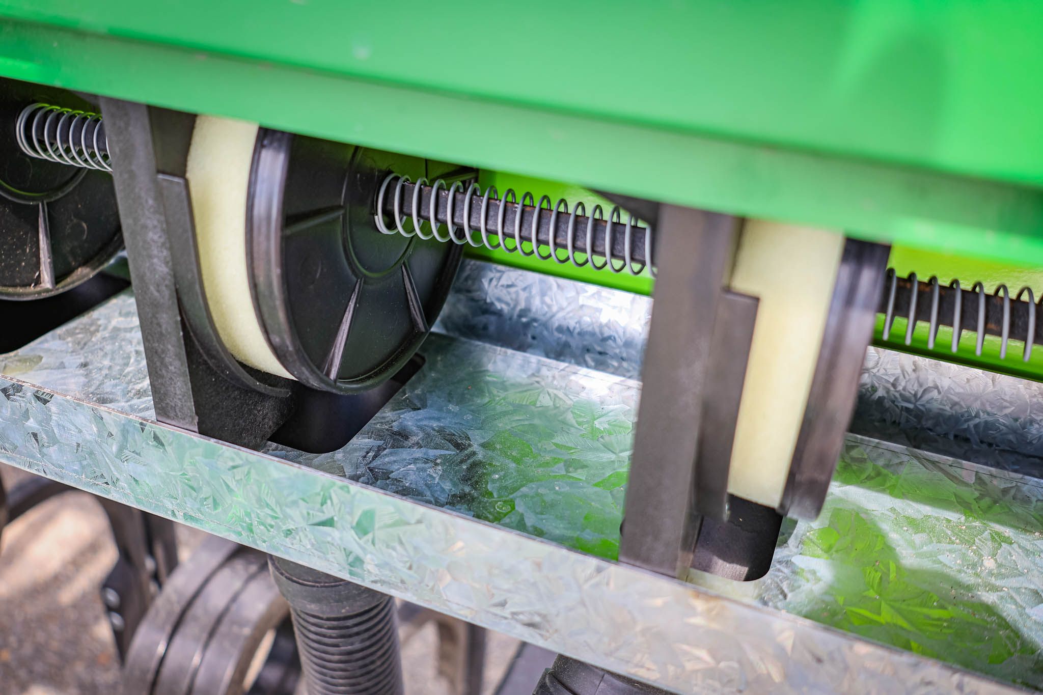 At the heart of the system is a unique sponge metering unit that handles the selected seed gently and accurately, without cracking or damaging the product. Whether you’re sowing fine grasses, coated seed, larger legumes, or heavy blends, the sponge system delivers consistent, reliable distribution across the full width of the drill.