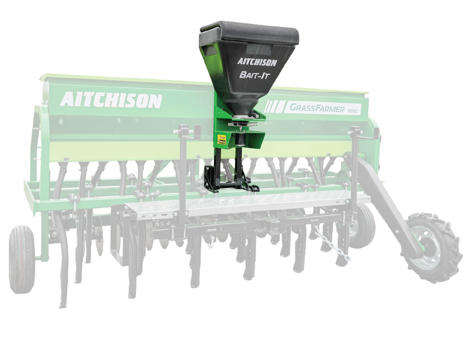 The Aitchison® BAIT-IT is a rugged 12-volt broadcast spreader, built to apply slug and rodent bait in the same pass as you sow. With a spread pattern of up to 24 metres and a 75-litre hopper, it delivers wide, efficient coverage without adding time or trips to your day.