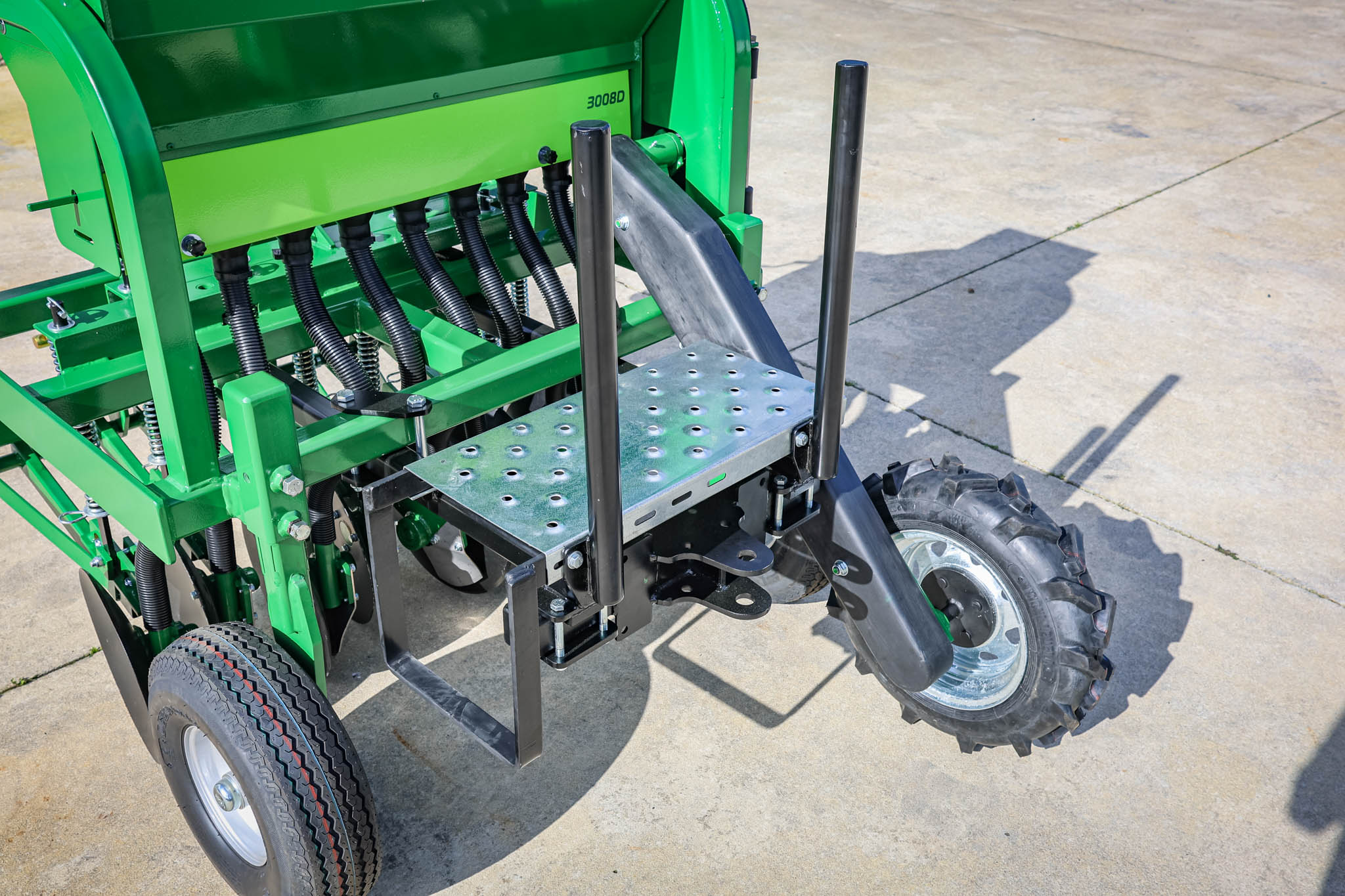 - Allows you to carry extra bags of seed right on the machine.